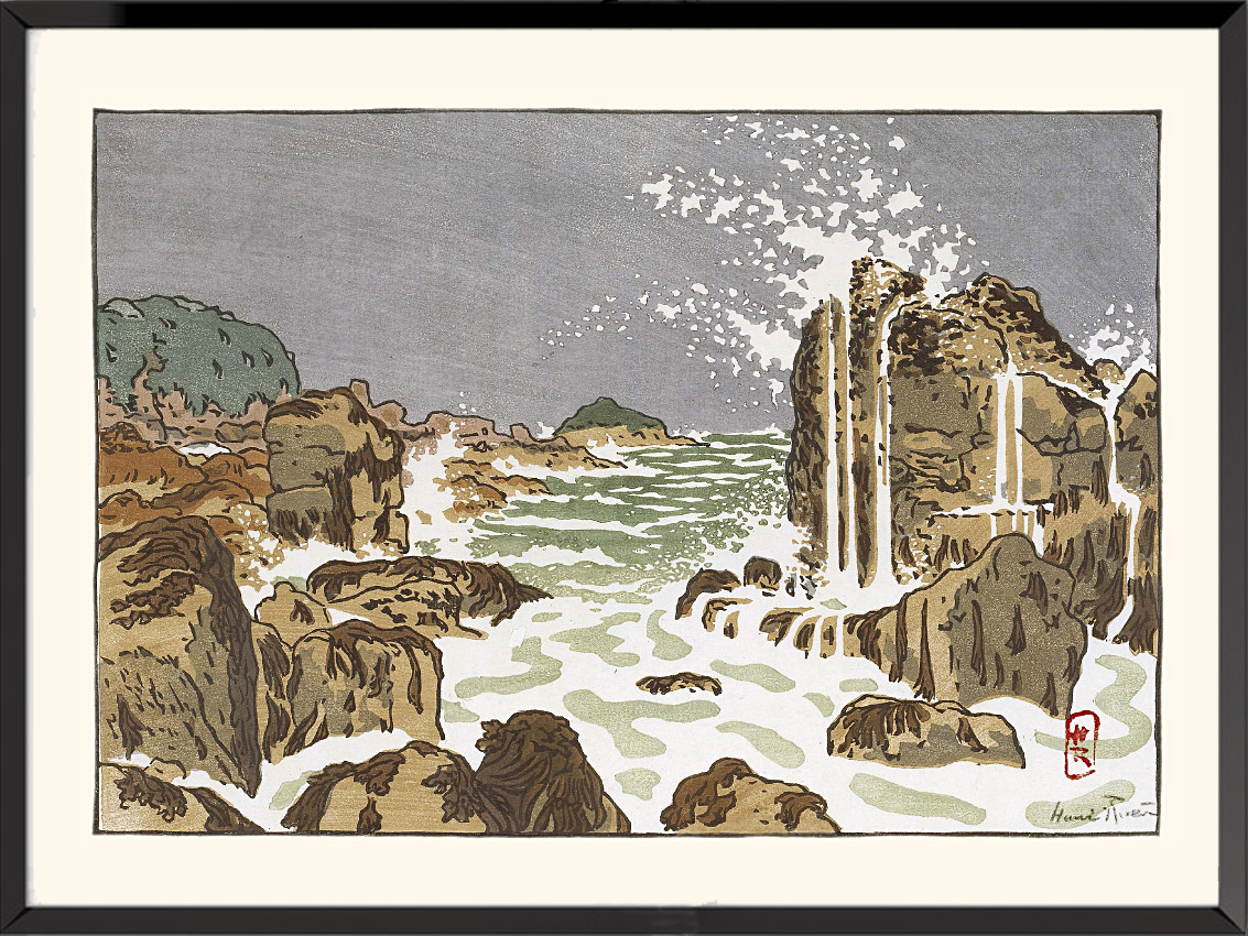 L'artiste Henri RivièreHenri Rivière fut un acteur essentiel du renouveau de l’estampe en couleurs dans les années 1890. Ses gravures sur bois réunies dans deux séries : « La mer, études de vagues » et « Paysages bretons », constituent la part la plus novatrice de son œuvre. Véritable coup de maître, elles sont le fruit de recherches expérimentales autour de la gravure sur bois à la manière japonaise. Tirées à vingt exemplaires chacune, devenues les plus rares et les plus recherchées de l’artiste, elles offrent une vision à la fois poétique et synthétique des côtes bretonnes.