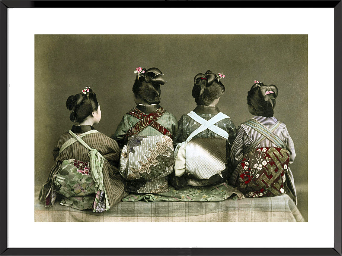 Le Japon ancien, l’ère Meiji, Danseuses en kimono assises, 1890