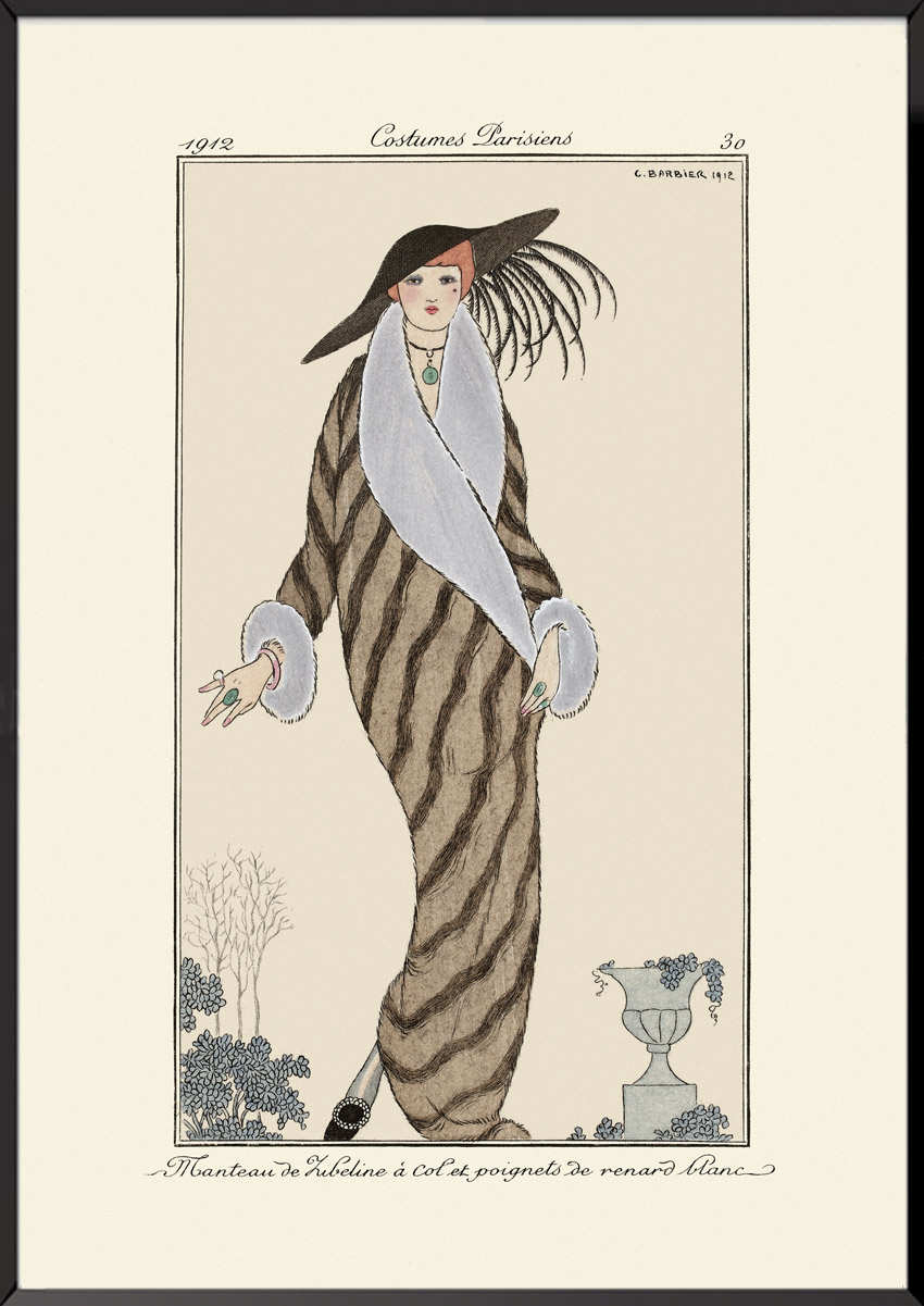 Manteau de zibeline à col et poignets de renard blanc, Journal des Dames et des Modes, 1912