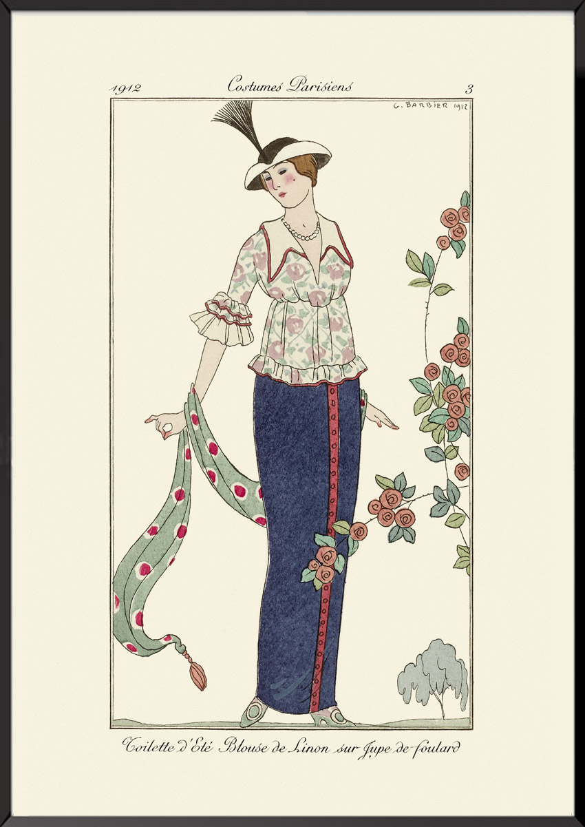 Toilette d’été, blouse de linon sur jupe de foulard, Journal des Dames et des Modes, 1912