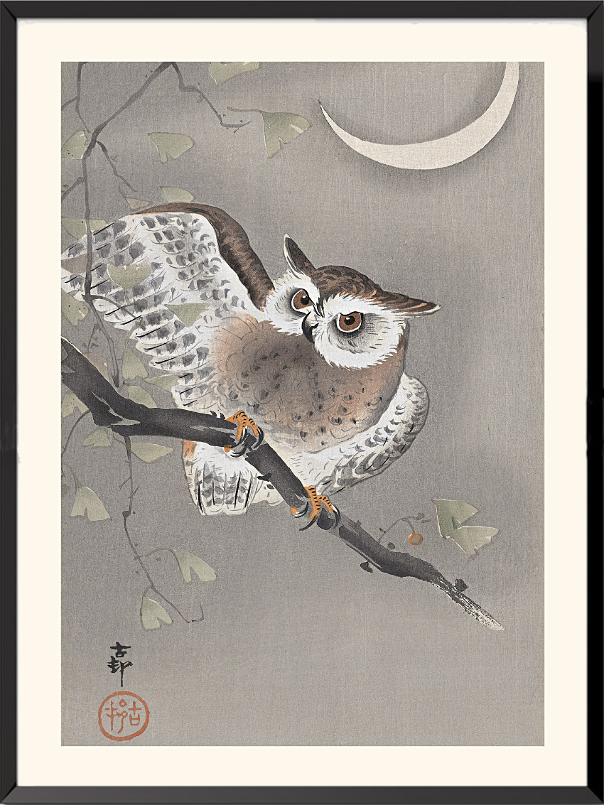 Collared scops owl, Ohara Koson
