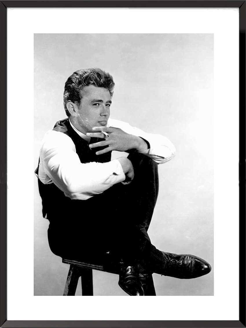 James Dean’s career started in advertisements for the Pepsi brand. He then took lessons at the Actors Studio in New York. His remarkable performance in the play The Immoralist on Broadway, opened the doors of Hollywood to him. There, he became the rising star of American cinema. After his first leading role in Elia Kazan’s East of Eden, he signed a contract with Warner Bros. There then came Nicholas Ray’s Rebel Without a Cause and George Stevens’s Giant, the third and final film in which James Dean appeared. A lover of speed and sports cars, James Dean died
