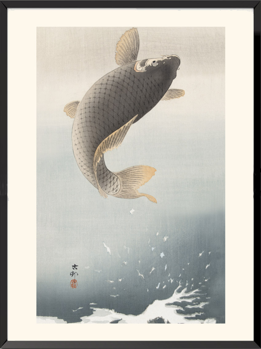 Leaping carp, Ohara Koson