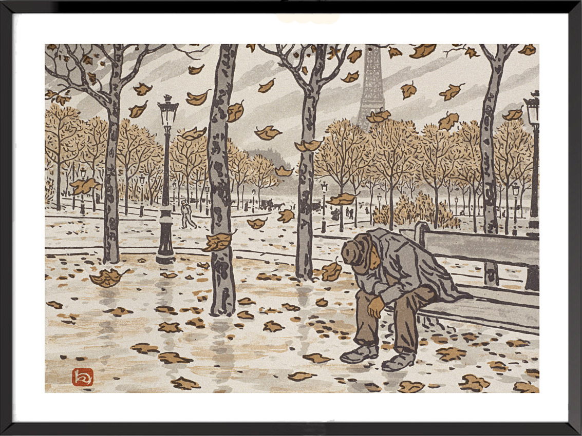 Henri Rivière, a founder of the Chat Noir cabaret, was one of the first masters of “Japonism”, and a collector and lover of Japanese art. He reinvented the traditional methods of the Japanese print to produce colour prints whose perfection and beauty gave him instant renown. After seeing the Eiffel Tower being built, the idea came to him, as with Hokusai and his 36 views of Mount Fuji, to make his Thirty-Six Views of the Eiffel Tower, published as a book in 1902.